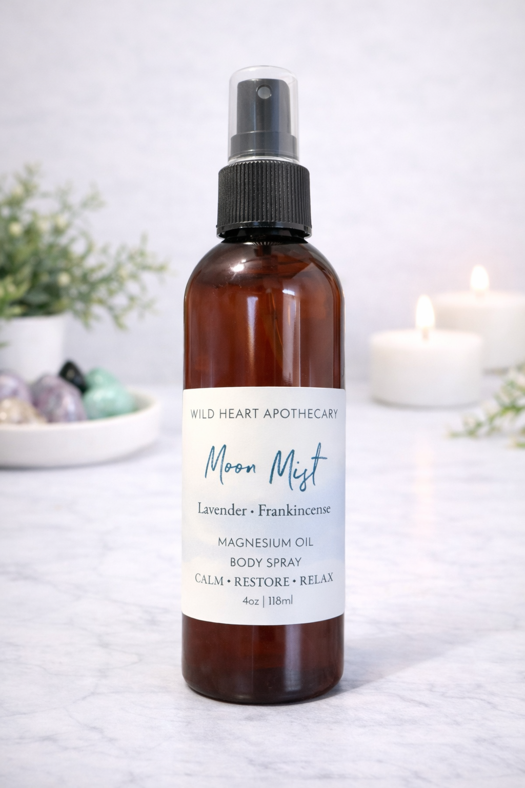 Moon Mist is gently scented magnesium oil body spray designed as a simple, soothing ritual for your daily wind-down. Crafted with magnesium chloride and lightly infused with lavender and frankincense essential oils, this mist invites a moment of calm, grounding, and self-care.